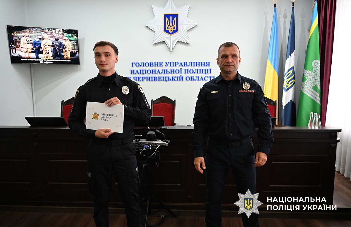 Також співробітники поліції отримали відзнаки, грамоти, подяки та цінні подарунки від МВС, НПУ, ГУНП, Чернівецької ОВА, обласної і міської рад.