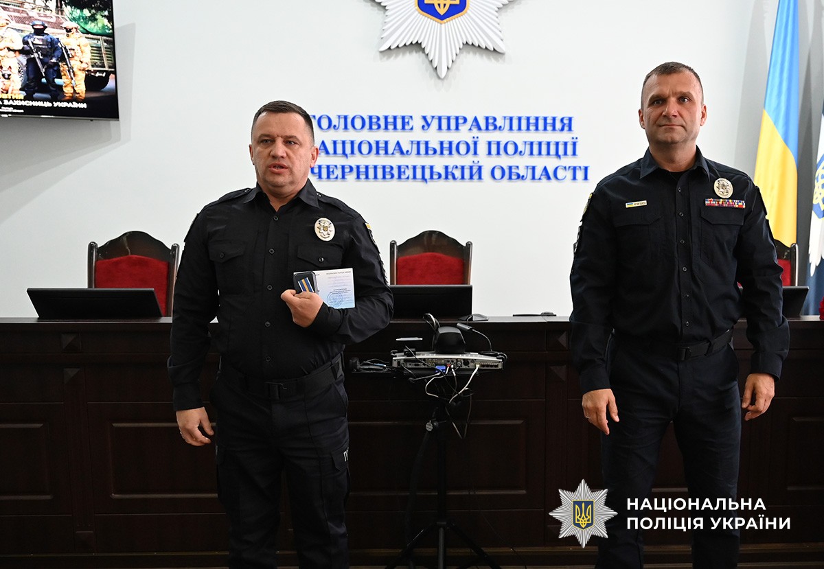 За сумлінну службу та вірність Присязі начальник поліції Чернівецької області Віктор Нечитайло вручив державні нагороди поліцейським, які з перших днів повномасштабної війни боронять Україну на передовій.