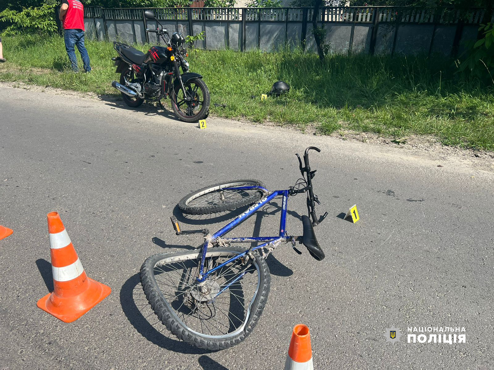 У результаті ДТП неповнолітній велосипедист отримав травми. Лікарі госпіталізували потерпілого до медичної установи для надання необхідної допомоги.