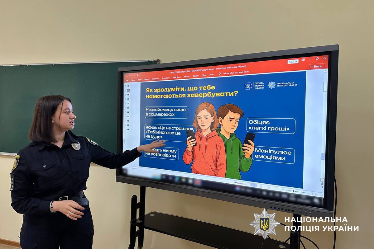 У закладах загальної середньої та профтехосвіти поліцейські Буковини проводять заходи, спрямовані на захист дітей від вербувань