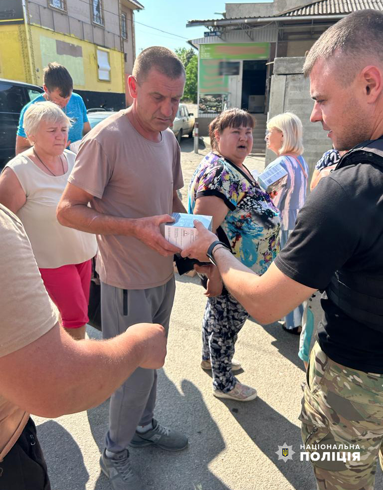 Найбільшою потребою громадян, які внаслідок зруйнованої дамби на річці Дніпро є питна вода та засоби гігієни. Мешканцям підтоплених районів Херсонщини роздали індивідуальні фільтра і порошок для очистки води, генератори, вологі серветки, свічки та корм для тварин. Таку допомогу також отримали колеги правоохоронці.