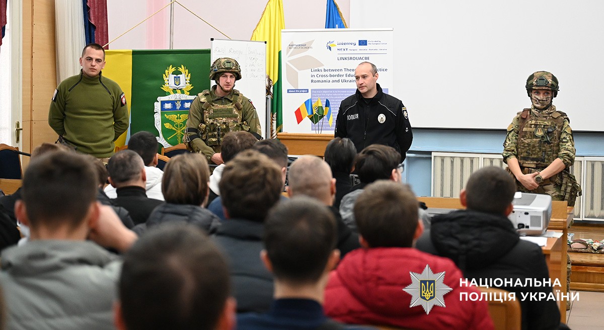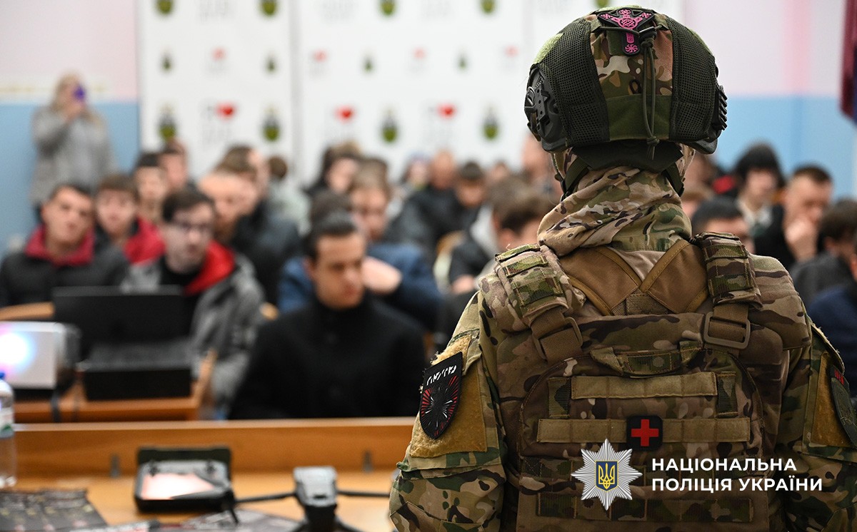 На Буковині тривають профілактичні заходи, спрямовані на військово-патріотичне виховання молоді. Сьогодні бійці батальйону спеціальних операцій «Еней» бригади Нацполіції «Лють» та ювенальні поліцейські зустрілися зі студентами закладів вищої освіти області.
