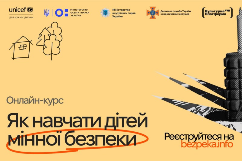 Дитячий фонд ООН (ЮНІСЕФ) спільно з Міністерством внутрішніх справ України та Міністерством освіти і науки України запустили онлайн-курс "Як навчати дітей мінної безпеки" для освітян, рятувальників та поліцейських. Він присвячений ефективному викладанню мінної безпеки дітям і підліткам з огляду на їхні вікові та психологічні особливості в інтерактивній формі.