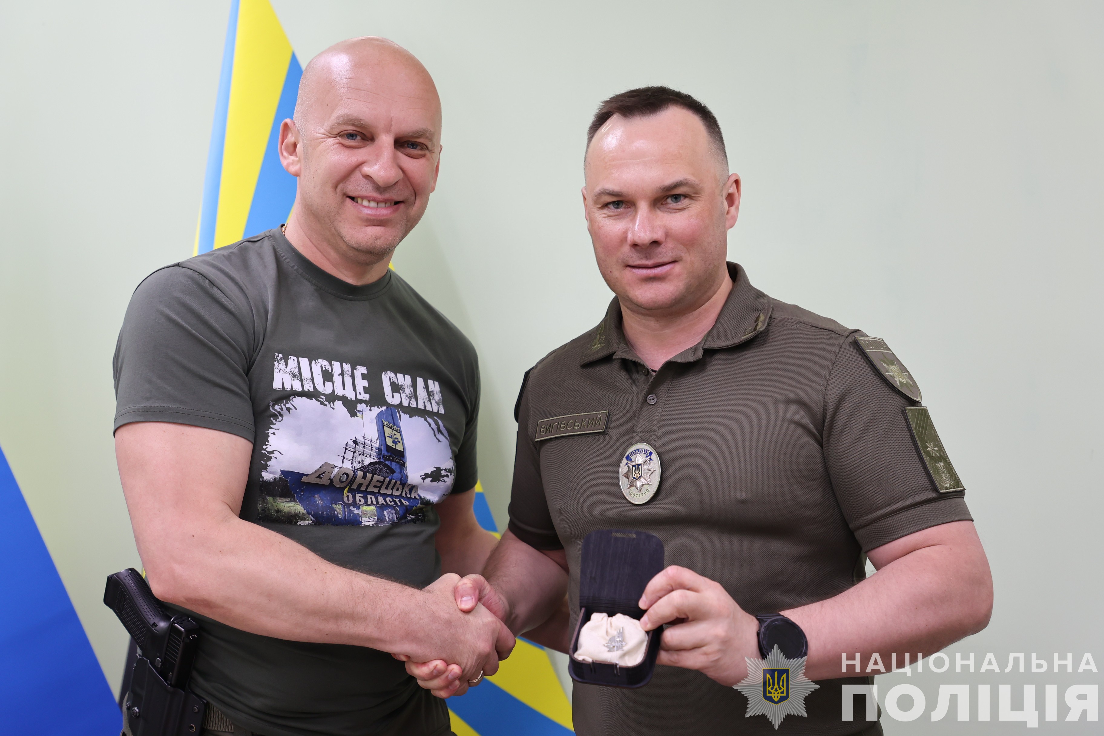 - Поліцейські Донеччини всі живуть у війні: щоденні обстріли, допомога і порятунок людей, евакуація, документування воєнних злочинів. Воїни бригади Нацполіції «Лють» тримають оборону на Часовому Яру, не даючи ворогу просуватись по нашій землі. На Донеччині лише один підрозділ поліції лишився в тій самій локації, яка була до повномасштабного вторгнення – всі інші пошкоджені або зруйновані. Ворог полює на самих поліцейських, наші автомобілі та відділи, саме через те, що поліція воює, поліція на фронті, і я щиро вдячний вам за самовіддану та важку роботу, яку ви робите щоденно, - наголосив Іван Вигівський.