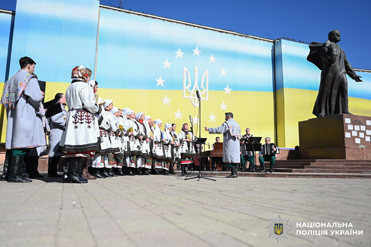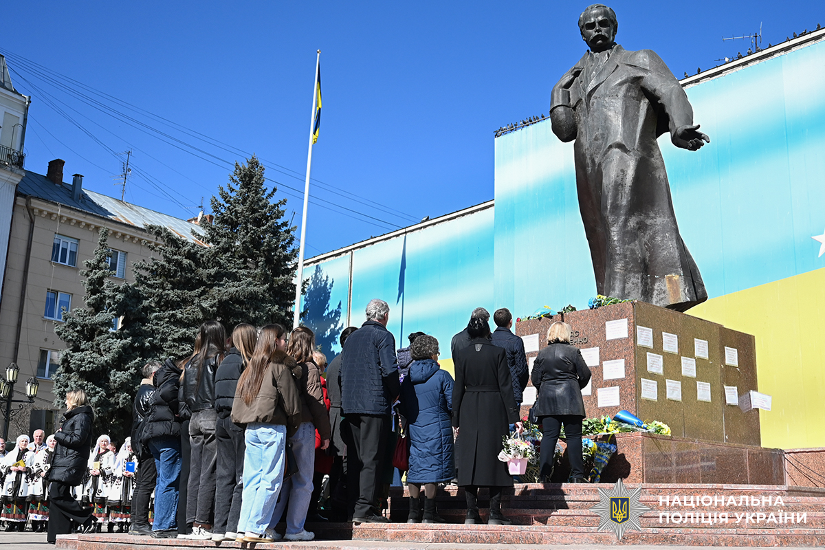 Цього березневого дня на Центральній площі лунали фрагменти з найвідоміших творів славнозвісного «Кобзаря» – «Заповіт», «Думка», «Реве та стогне Дніпр широкий», «Свою Україну любіть»… У них – прості, але важливі істини, які варто берегти у пам'яті кожному з нас і нині – безумовна любов до своєї Батьківщини, шана до нашої історії і традицій, боротьба проти поневолення українського народу.