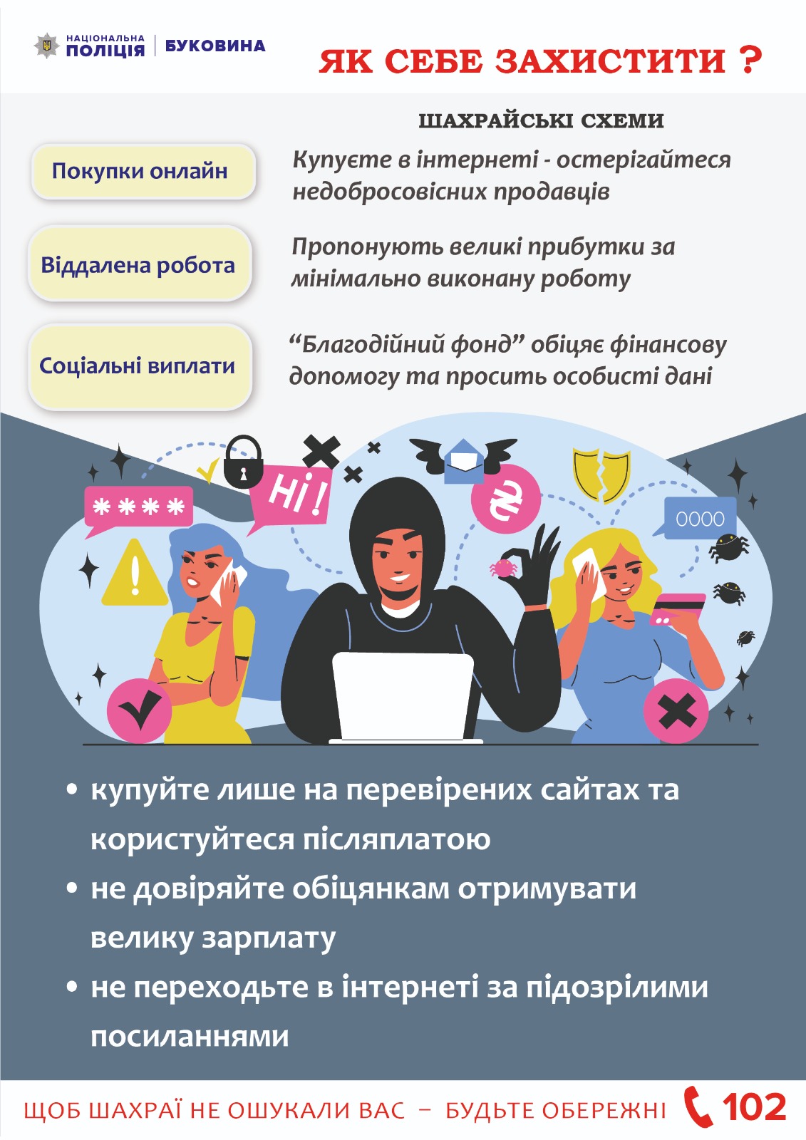 Учора, 13 березня, з повідомленням про шахрайство до відділення № 5 (м. Глибока) Чернівецького РУП звернулася 56-річна жителька села Кам’янка. Жінка розповіла, що в месенджері отримала СМС з посиланням про можливість отримання додаткової соцвиплати. Буковинка перейшла за фішинговим посиланням та ввела особисті дані і реквізити банківської картки. В результаті чого з рахунку жінки зникло 25 тисяч гривень.