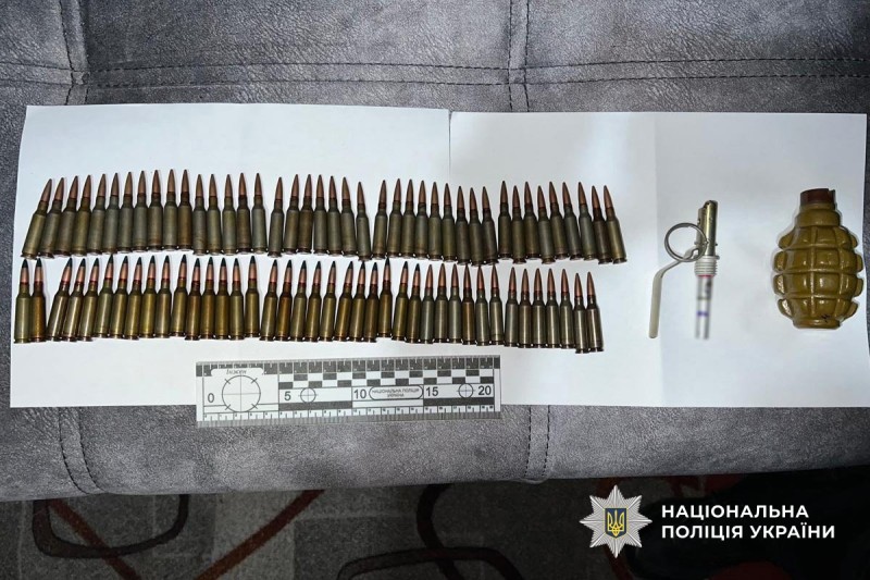 Під час проведення санкціонованого обшуку за місцем проживання 53-річого жителя Сокирянської громади поліцейські виявили та вилучили 81 набій і гранату з запалом, які чоловік зберігав без передбаченого законом дозволу.