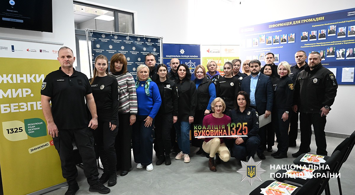 30 жовтня в Чернівецькому районному управлінні поліції відбулась робоча зустріч на тему: «Жінки. Мир. Безпека в Україні». На заході обговорили питання гендерної рівності, безпекової ситуації в громадах та спільні кроки щодо активнішого залучення жінок до прийняття рішень. Також мета круглого столу – підвищити обізнаність населення про Резолюцію Ради Безпеки ООН 1325 «Жінки, мир, безпека».
