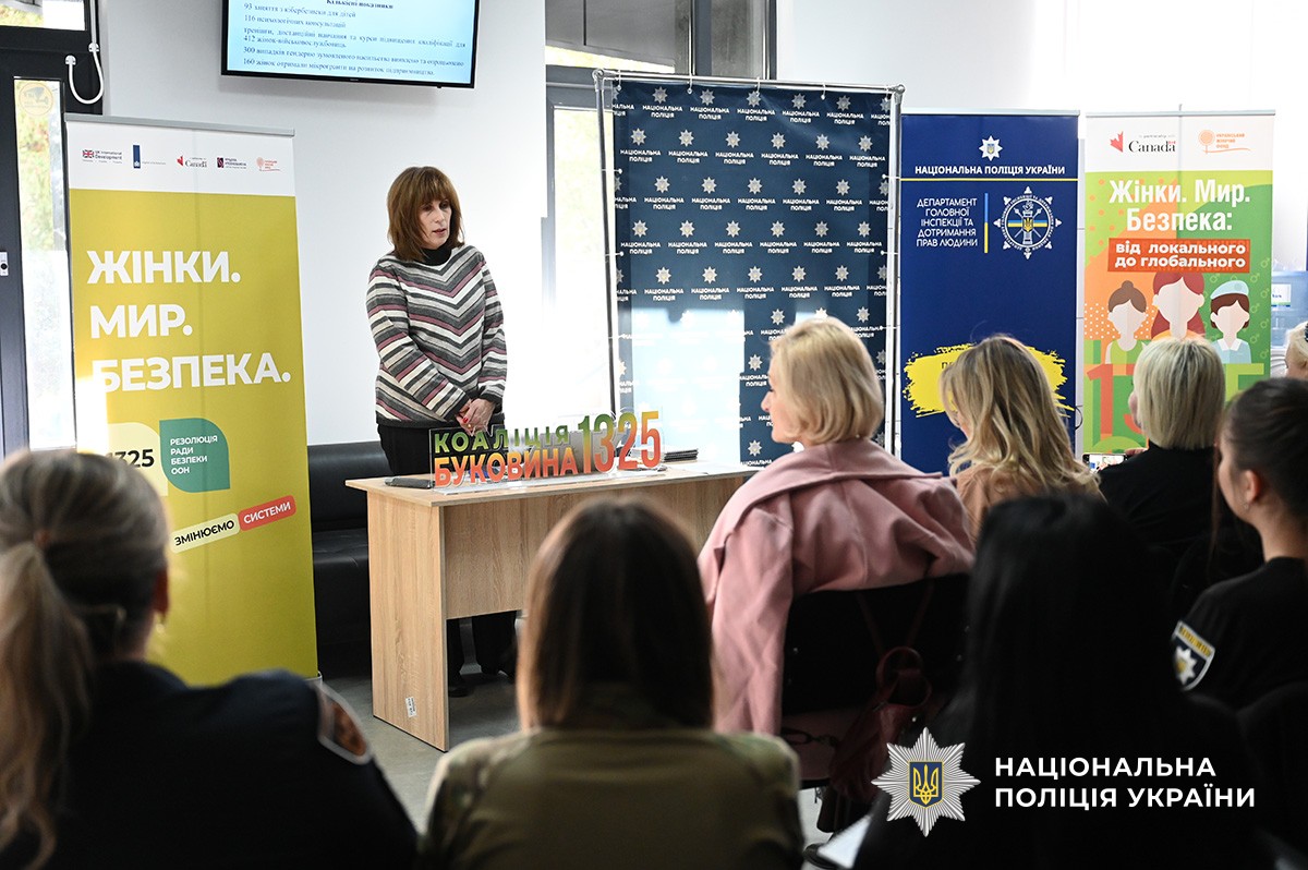 Захід ініціювали представниця Департаменту головної інспекції та дотримання прав людини НПУ Альона Тодоріко та голова секретаріату коаліції «Буковина 1325» Наталія Батракова в рамках української інформаційної кампанії «1325 зміцнює країну».