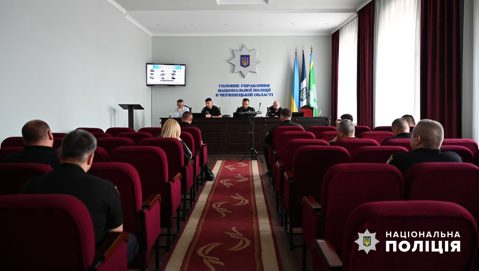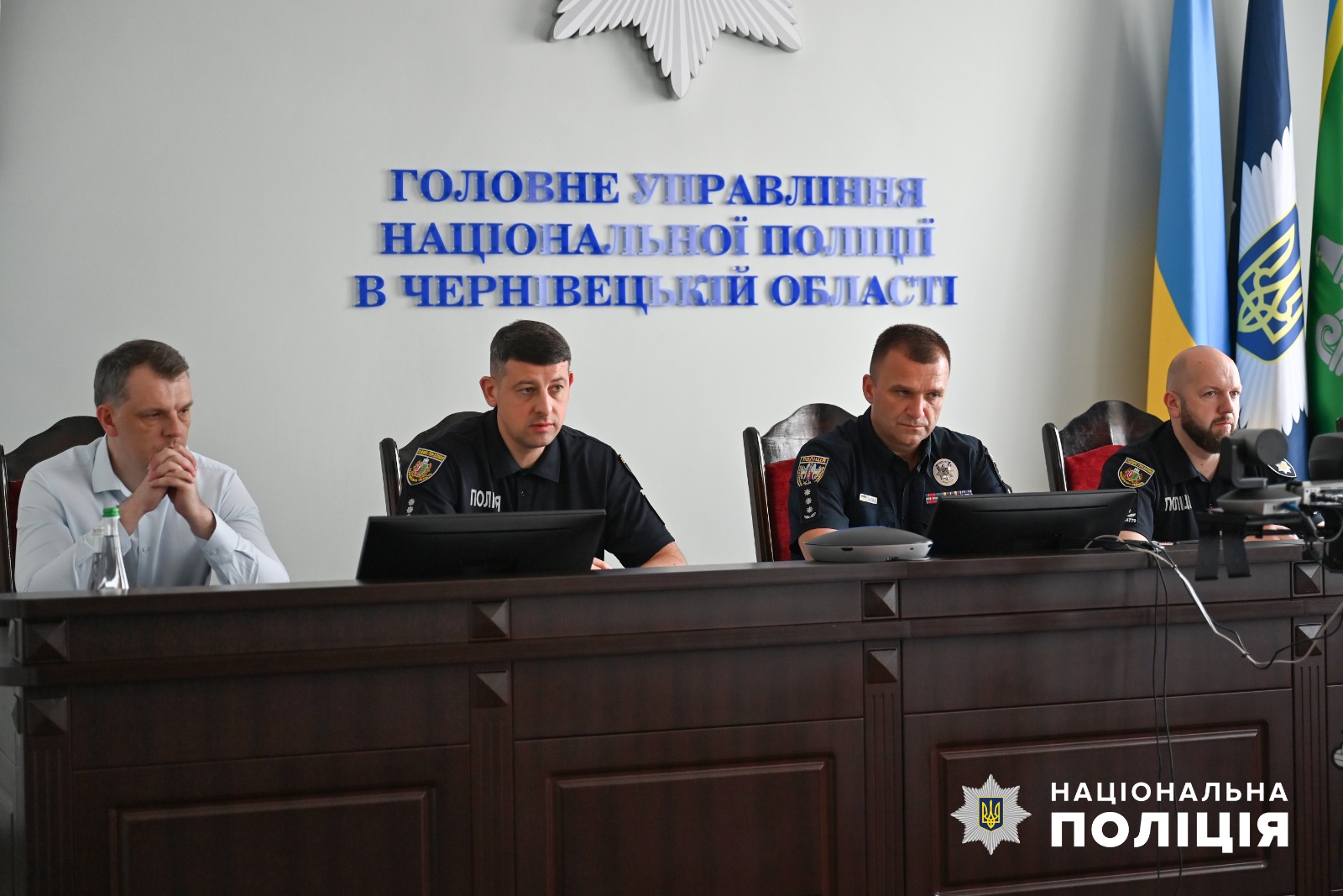 Участь у заході взяли начальник ГУНП у Чернівецькій області Віктор Нечитайло разом із заступниками Святославом Кішларом та Вадимом Старчуком, а також керівники територіальних і структурних підрозділів. В онлайн-режимі до робочої зустрічі приєдналися голови територіальних громад Чернівецької області.